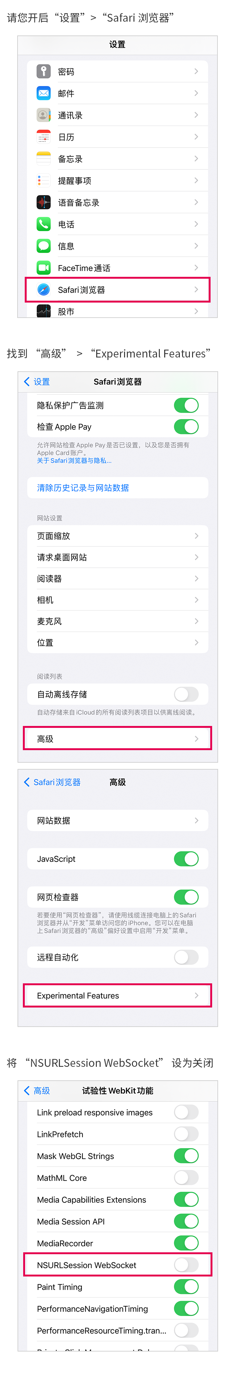 将 “NSURLSession WebSocket” 设为关闭